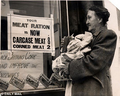 a. reduced availability of luxuries and consumer goods, esp when brought about by government policy