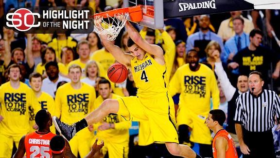 McGary had just scored 10 points, but pulled down 12 rebounds and dished out a team-best six assists. He’d made shots from the high post and the block. He’s averaging 16 points and 11.6 rebounds a game during the NCAA tournament, and that includes an impressive stat line (25 points, 14 boards) against one of the nation’s best frontcourt player in Jeff Withey at Kansas. Tim Hardaway, Jr. added 13 points in the Wolverines victory. Syracuse was led by C. J. Fair’s 22 points but it wasn’t enough as the Michigan Wolverines punched their ticket for the Final dance of the Season against the Louisville Cardinals.