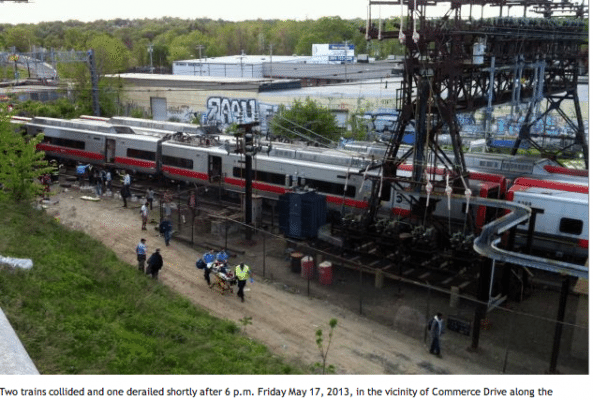 The southbound train, which originated out of New Haven, derailed first and then it was struck by the northbound train, Perez said. The accident occurred just underneath the Interstate 95 overpass.