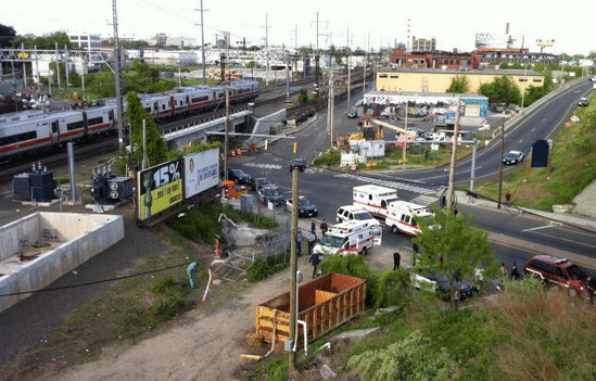 Commerce Drive has been shut down from Dewey Street to beneath the I-95 overpass as first responders attend to the situation.