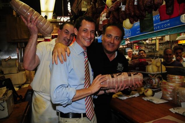 Anthony Weiner showed off a big Italian sausage at an Arthur Ave. Deli Saturday, agreeing to pose with the ample-sized meat on a campaign stop in the Bronx.