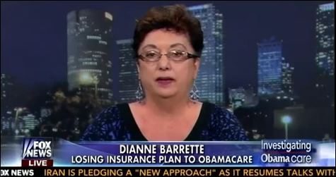 As reported by the main stream media Jan Crawford of CBS, Barrette received a letter from her insurance company telling her that they were cancelling her insurance plan mainly because of new regulations under Obamacare. Barrette told the network that on her old policy, her insurance bill was about $54 a month. But with the cancellation , her insurance company is offering her a new policy costing around$600 a month.