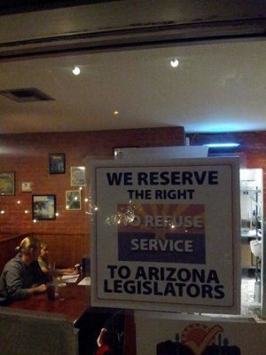 “We reserve the right to refuse service to Arizona legislators,” the sign read.
