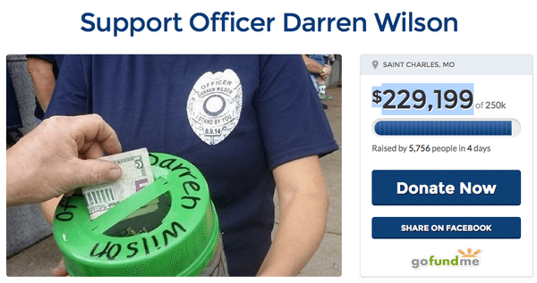 “I support officer Wilson and he did a great job removing an unnecessary thing from the public,” wrote David Durant, who chipped in $50.