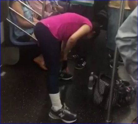 Woman Does Her Stretching Exercises On Crowded Train – Video