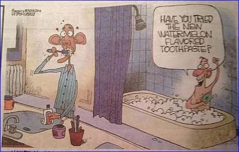 In an attempt to poke fun at the Secret Service and the recent intruder who broke into the White House a couple weeks ago – the intruder reaching much further in the building that originally thought – the Boston Herald ran this cartoon showing the intruder taking a bath and the President brushing his teeth. The intruder asking the president if he tried the “watermelon flavored toothpaste.”