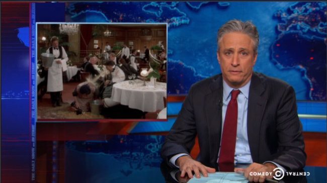 That revelation left Stewart speechless and the only think he could do was to ask for a clip of Mr. Creosote projectile vomiting in Monty Python’s “The Meaning Of Life.”