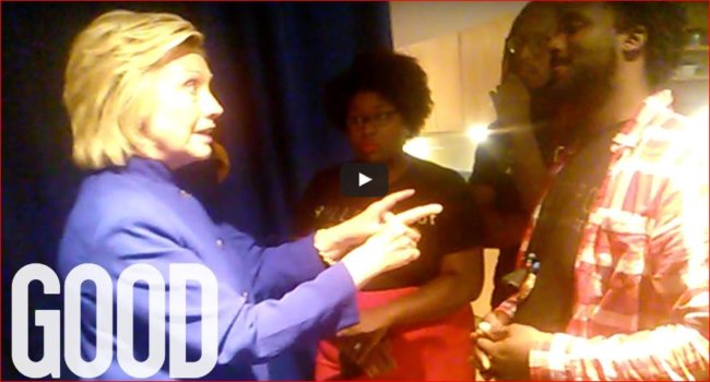 The video was posted by Gabriel Reilich over at GOOD MAGAZINE, and it shows protesters from the BlackLivesMatter movement having a one on one with the Democratic frontrunner, Hillary Clinton, after one of her campaign events in New Hampshire. GOOD has obtained exclusive video of the exchange between the Democratic candidate and members of the Boston chapter of #BlackLivesMatter, where a somewhat defensive yet candid Clinton responds to several tough questions.