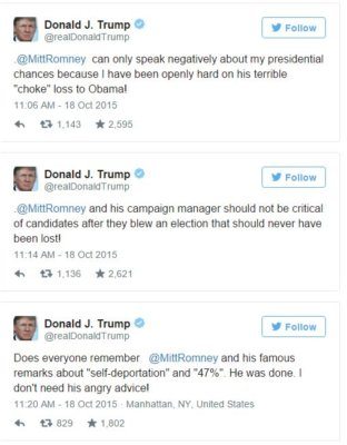 Naturally, Donald Trump took offence and he has a Twitter account with some followers capable of retweeting everything the donald says. Trump took to twitter and blasted Mitt Romney for his CNN remarks.
