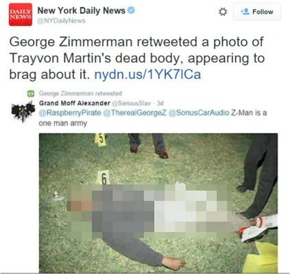 George Zimmerman Retweets Photo of Trayvon Martin’s Dead Body