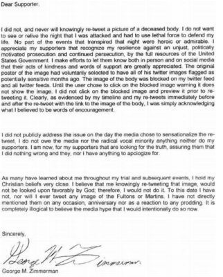 For what it’s worth, here is Zimmerman’s statement: