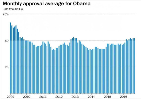 The last time that President Obama’s approval rating in Washington Post-ABC News polling was as high as it is in our new survey was six months after he took office. At 58 percent, Obama’s approval is 15 points higher than it was on the eve of the 2014 elections, where his party got blown out. Hillary Clinton’s hope is that the reversal of opinions on Obama two years later will also lead to a reversal of fortunes for other Democrats — and there’s reason to think that it will.